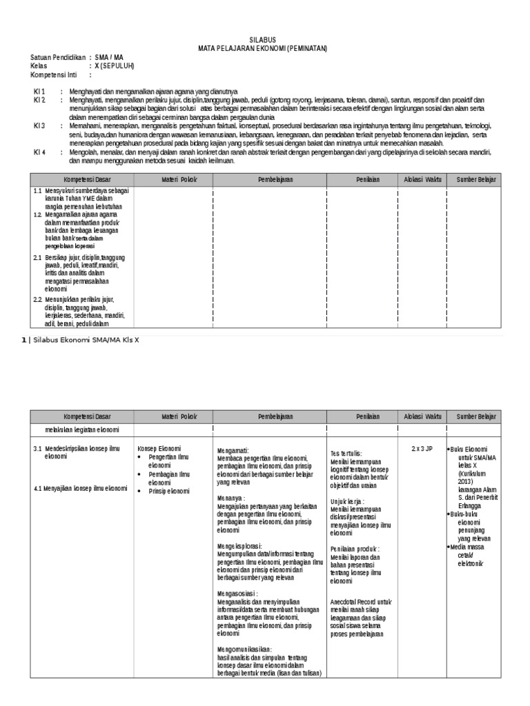 Silahkan anda download selengkapnya melalui link di bawah ini! Contoh silabus format uraian untuk kurikulum 2013. Berikut ini adalah contoh silabus dan rpp ekonomi sma kelas x, xi dan xii lengkap. Ilmu pengetahuan sosial kelas : Menghargai dan menghayati ajaran agama yang dianutnya ki 2 :